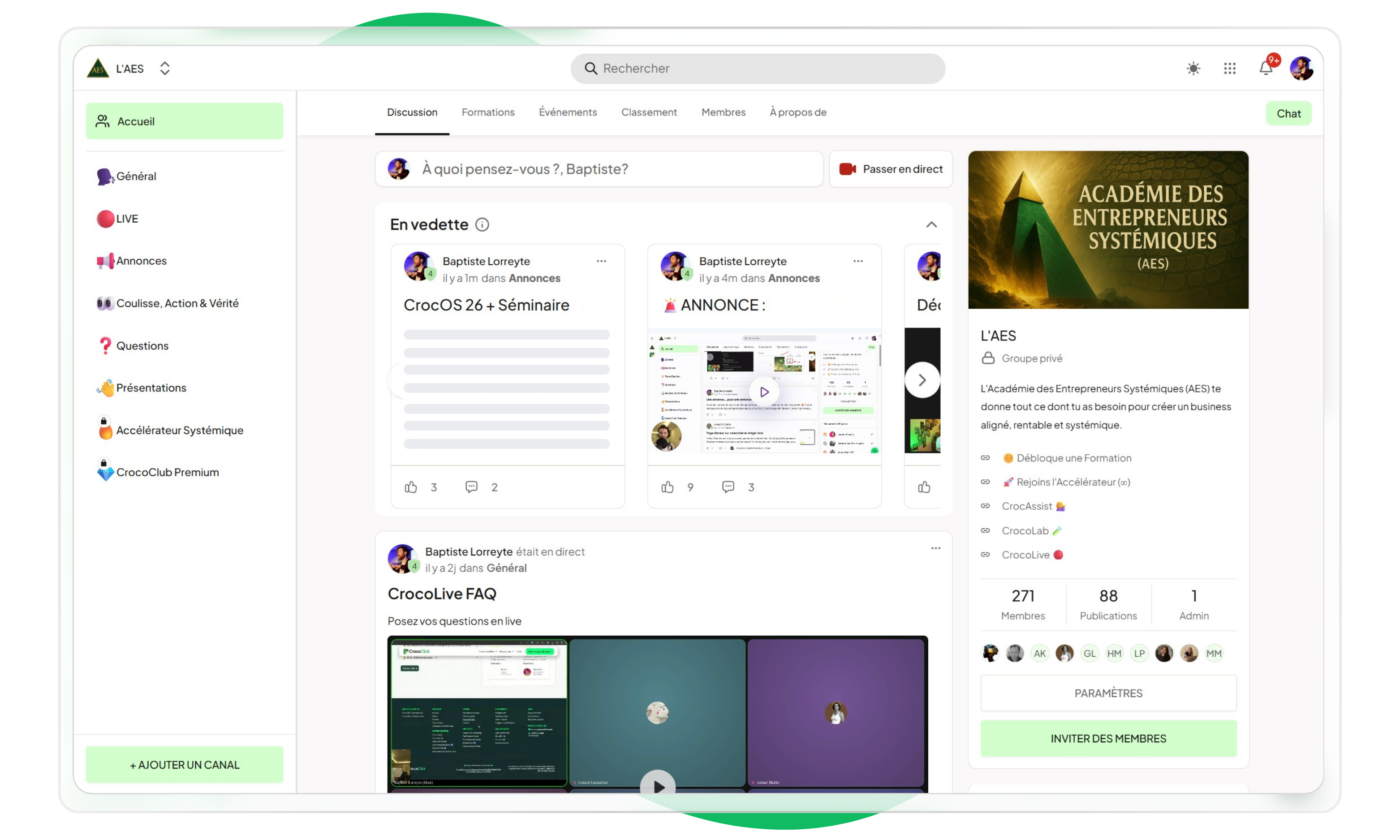 Animez des sessions en direct au cœur de votre communauté : Q&A, coaching de groupe, hot seats ou ateliers interactifs.