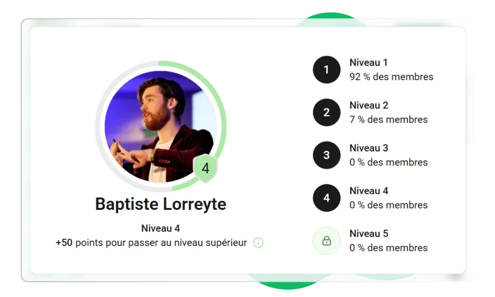 Stimulez l’engagement grâce à des niveaux, points, badges et récompenses entièrement personnalisables.