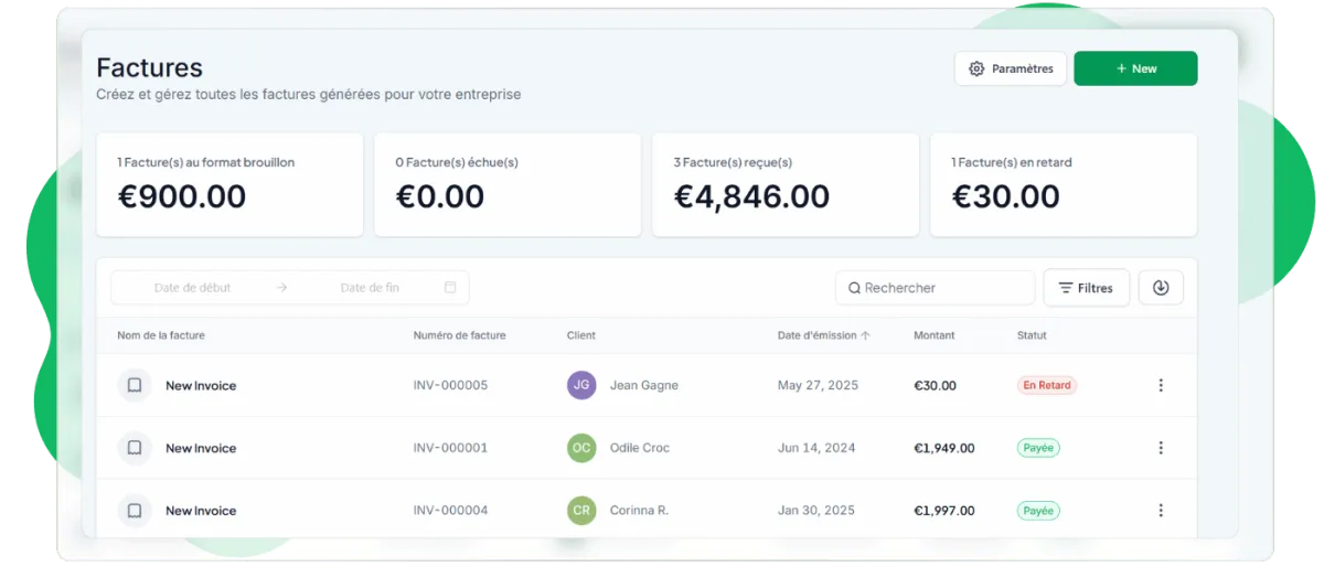 Relances automatiques : le système détecte les impayés et harcèle (poliment) le client jusqu'à ce que l'argent soit sur votre compte.